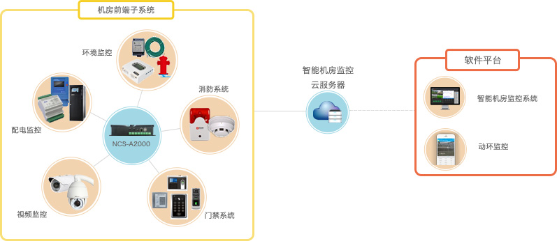 系统由智能中控主机、视频监控系统、环境监控系统、配电监控系统、机房消防系统、门禁控制系统、网络通讯系统、系统服务器、供电防雷系统以及系统平台软件(PC软件/手机APP)组成。
